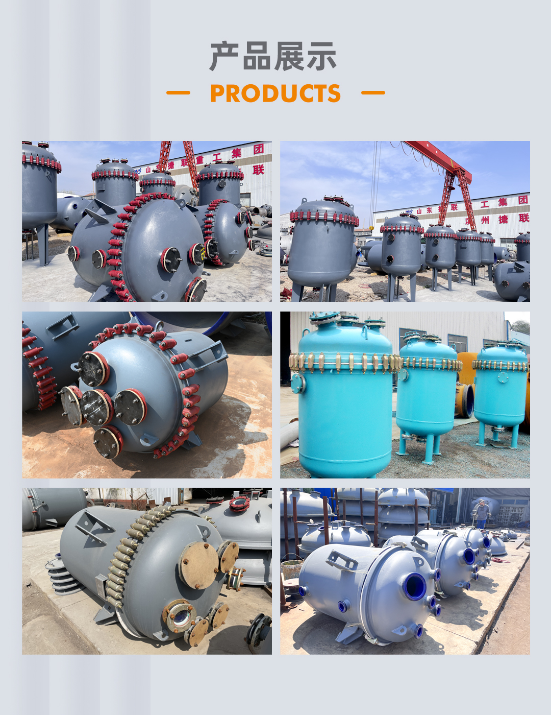 滨州搪联化工机械有限公司,专业生产搪玻璃反应釜、不锈钢反应釜、碳钢反应釜以及四氟、pp、合金等工艺的反应釜、换热器、搅拌器、储罐、列管冷凝器、塔节、薄膜蒸发器、真空回转干燥机、实验釜、整套化工自动化装置以及各类非标设备。